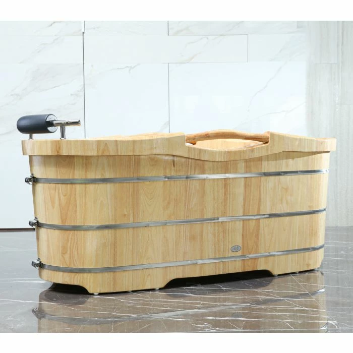 Alfi Brand AB1163 61″ Free Standing Wood Bath with Cushion Headrest