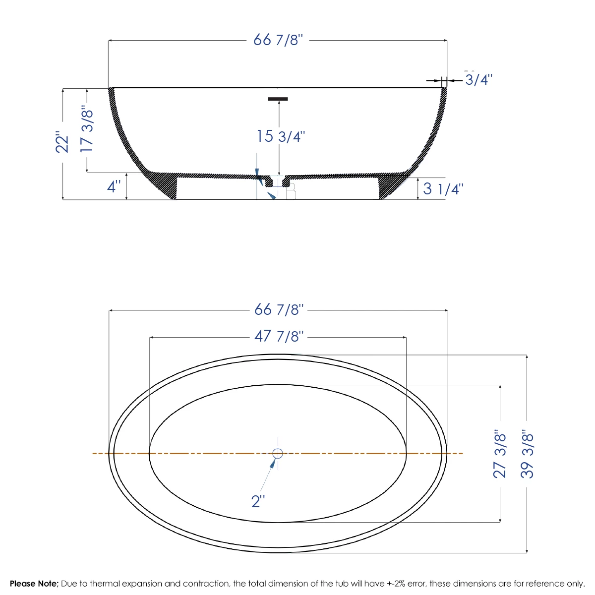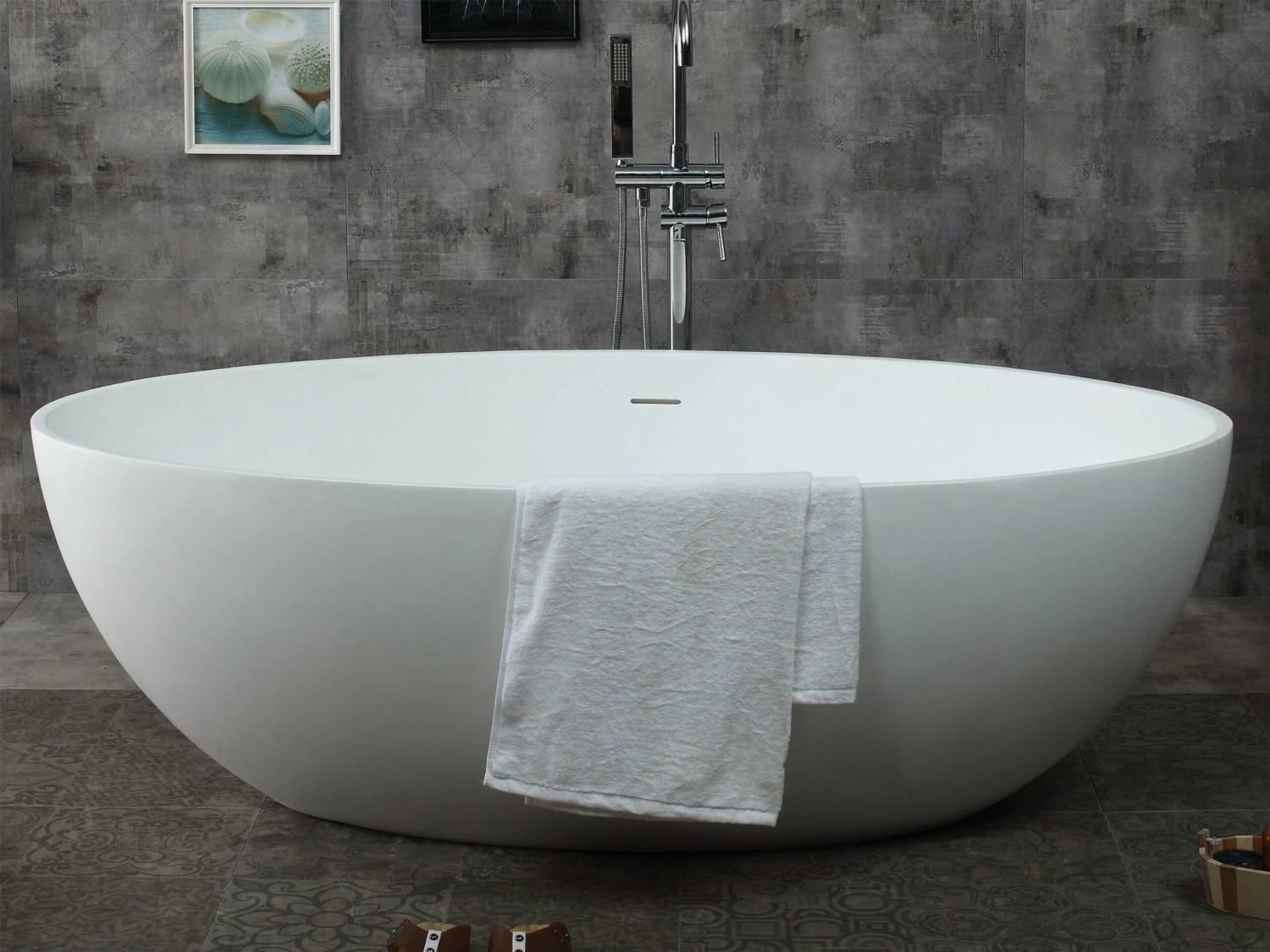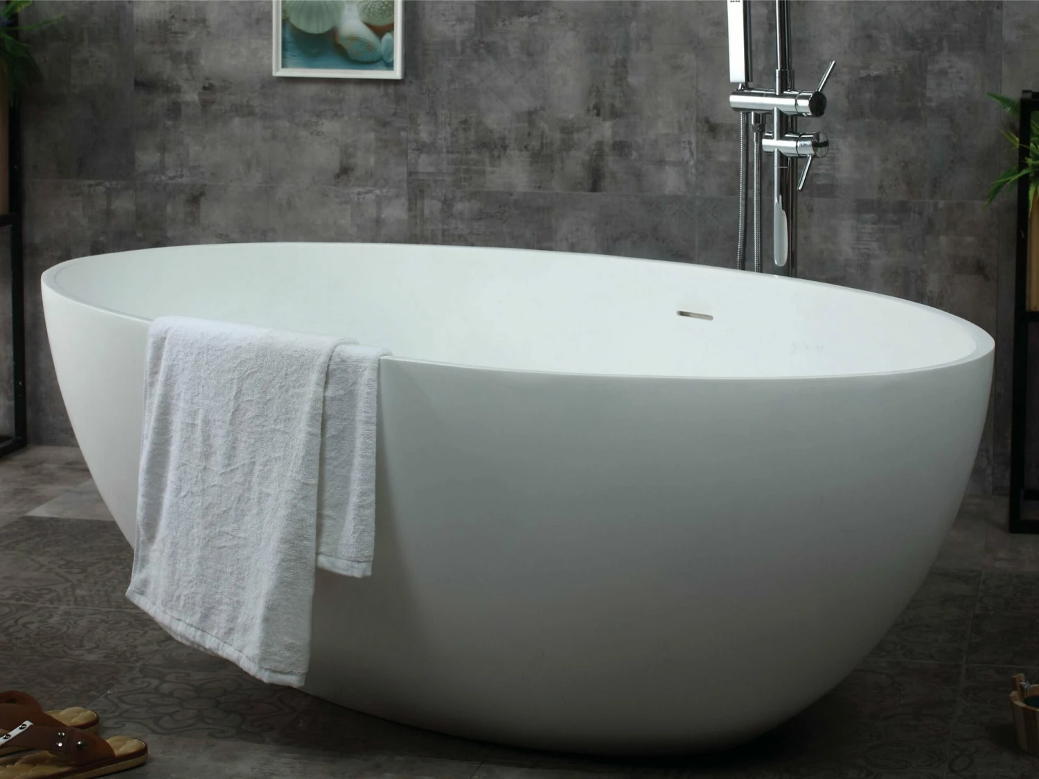 AB9941 67″ White Oval Solid Surface Smooth Resin Soaking Bathtub By ALFI Brand