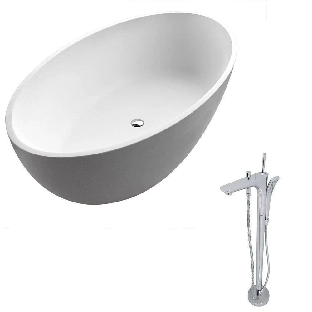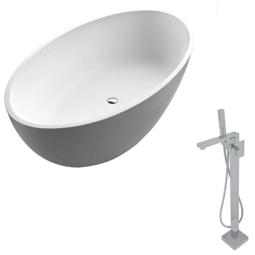 Bring an oasis home with our ANZZI Cestino artificial stone freestanding soaking bathtub. Ergonomically oval designed to cradle the body’s form for maximum comfort this tub is styled with a classic and contemporary flair. Relax and drift away while submerged in your personal spa pool. Paired with the luxurious ANZZI freestanding faucet you are sure to have a relaxing soak.Features & Benefits of ANZZI Cestino: