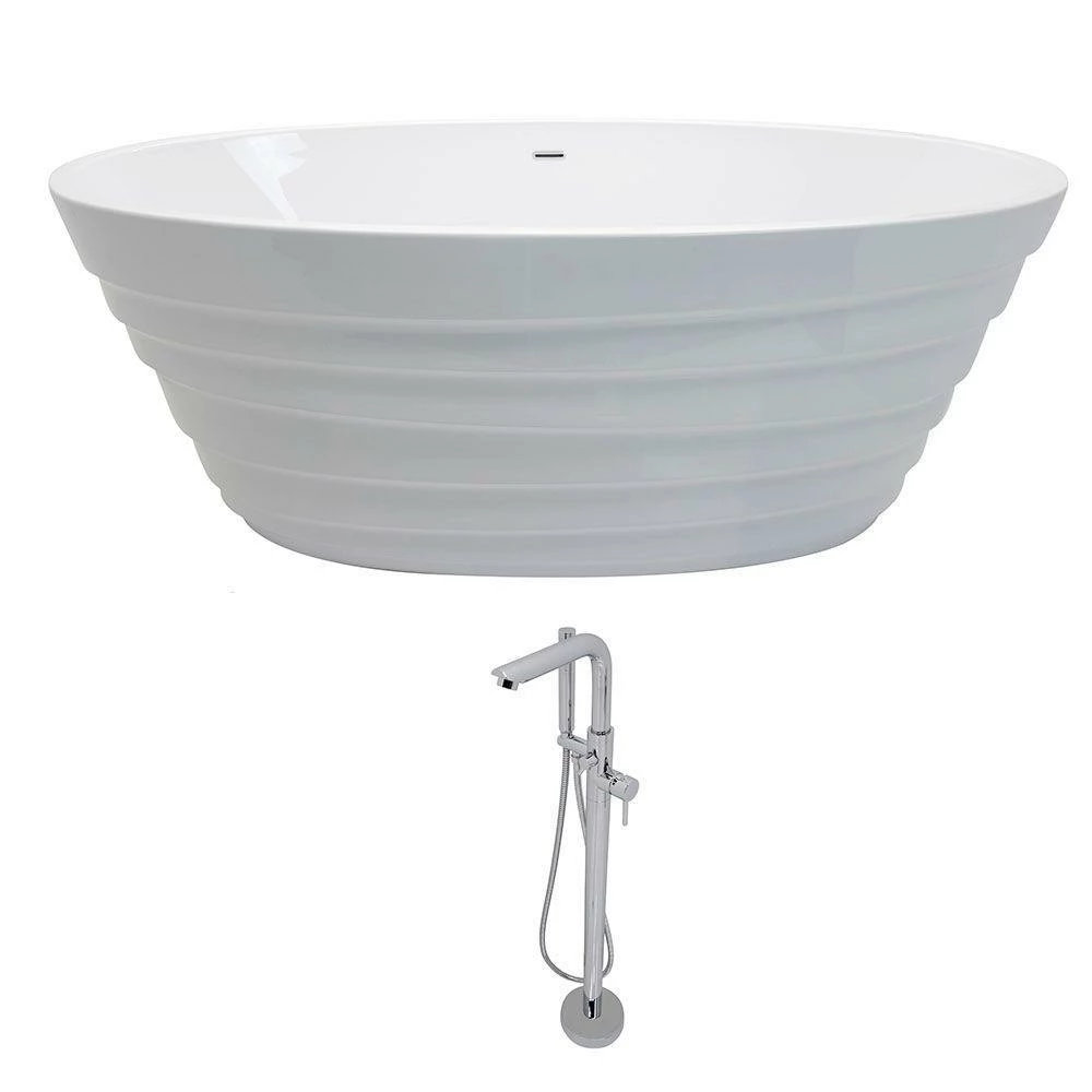 ANZZI Nimbus Series Acrylic Classic Freestanding Flatbottom Non-Whirlpool Bathtub in White with Freestanding Faucet