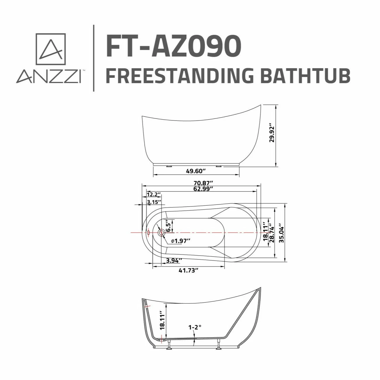 Bring an oasis home with our ANZZI Talyah soaking bathtub crafted in white marine grade acrylic with high yield fiberglass reinforcement. Ergonomically designed to cradle the body’s form for maximum comfort this tub is styled with a classic and contemporary flair. Relax and drift away while submerged in your personal oasis.Features & Benefits of ANZZI Talyah FT-AZ090: