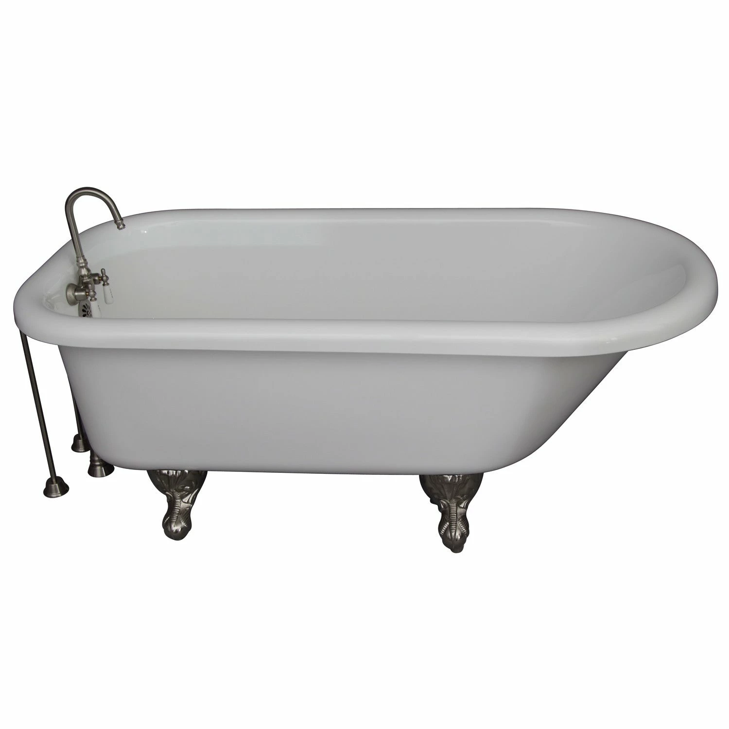 Anthea TKADTR60-WBN4 60″ Acrylic Roll Top Premium Tub Kit in White with Brushed Nickel Accessories By Barclay