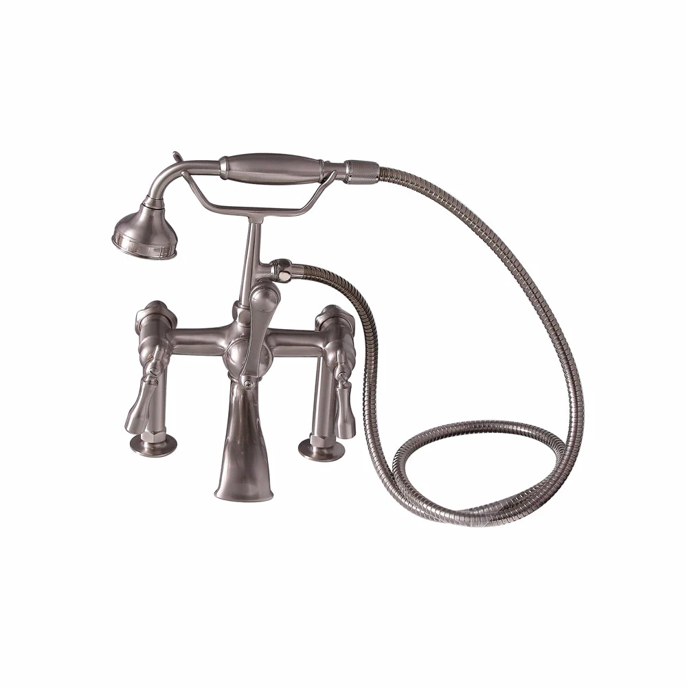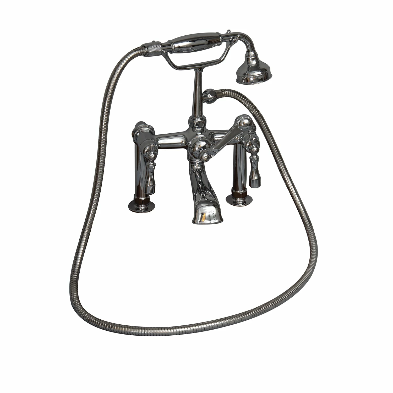 Clawfoot Tub Rim-Mounted Filler with Hand-Held Shower – Metal Lever 2 Handles By Barclay