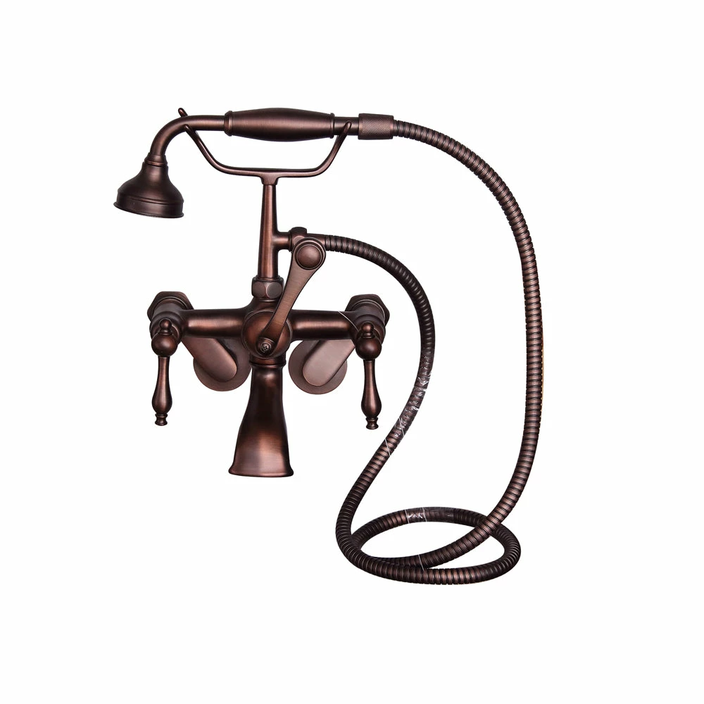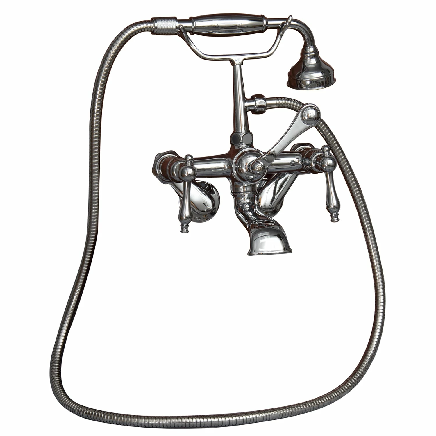 Clawfoot Tub Wall-Mounted Filler with Hand-Held Shower – Metal Lever Handles By Barclay
