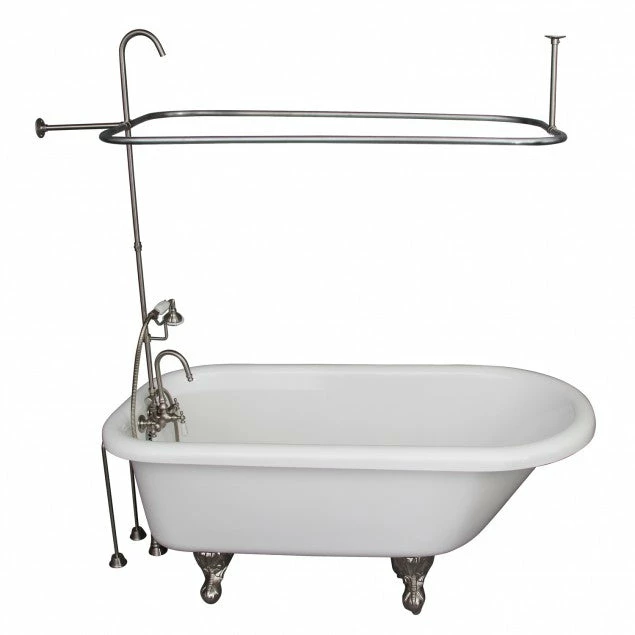 - Kit Includes 67″ Double Acrylic Tub, Tub Filler with Handshower, 60″ Riser, Rectangular Shower Rod, Bath Supplies & Tub Drain