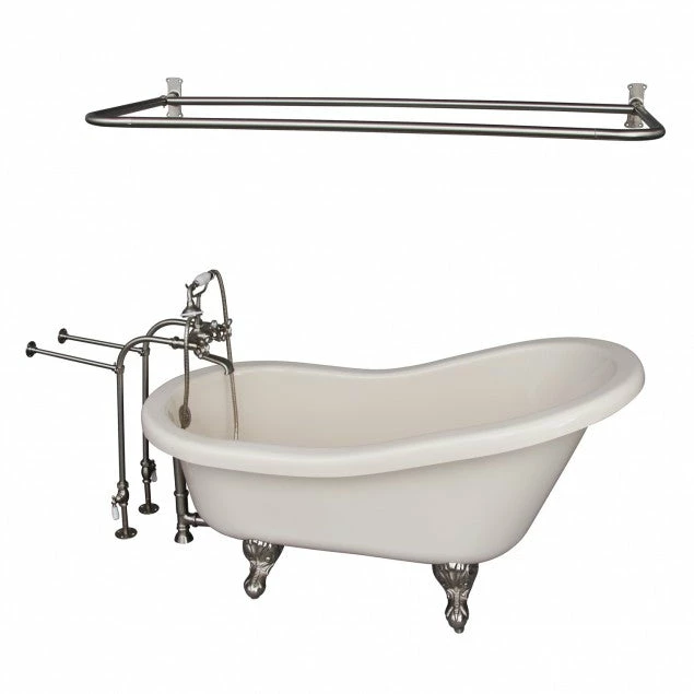 - Kit includes 60″ Double Acrylic Tub, Tub Filler with Handshower, Rectangular Shower Ring, Tub Supplies and Tub Drain