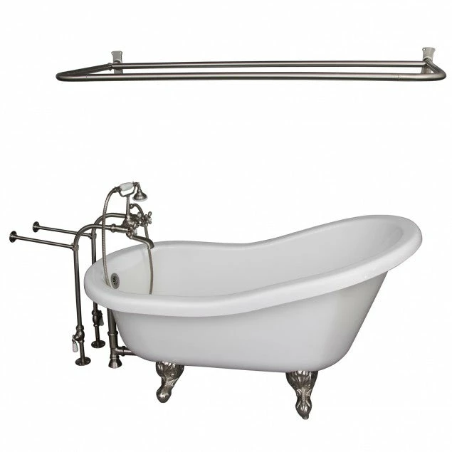 - Kit includes 67″ Double Acrylic Tub, Tub Filler with Handshower, Rectangular Shower Ring, Tub Supplies and Tub Drain