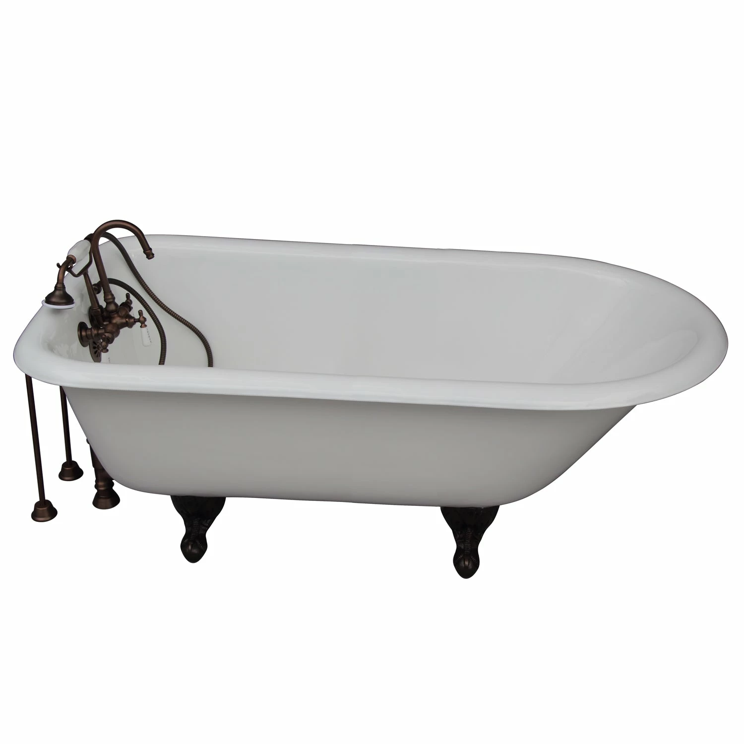 - Kit includes 68″ Cast Iron Tub, Tub Filler with Handshower, Tub Supplies and tub drain