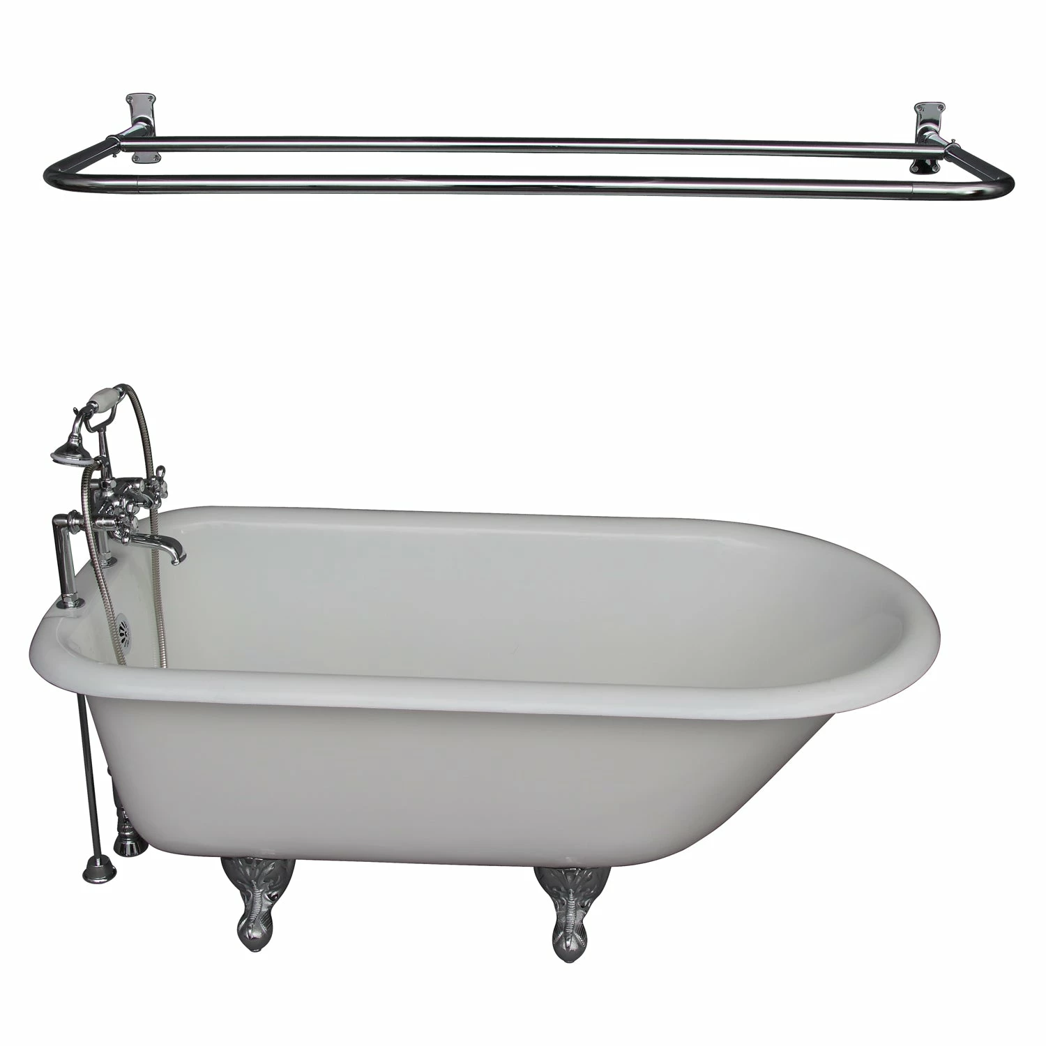 - Kit includes 68″ Cast Iron Tub, Tub Filler with Handshower, “D” Shower Rod, Tub Supplies and Tub Drain