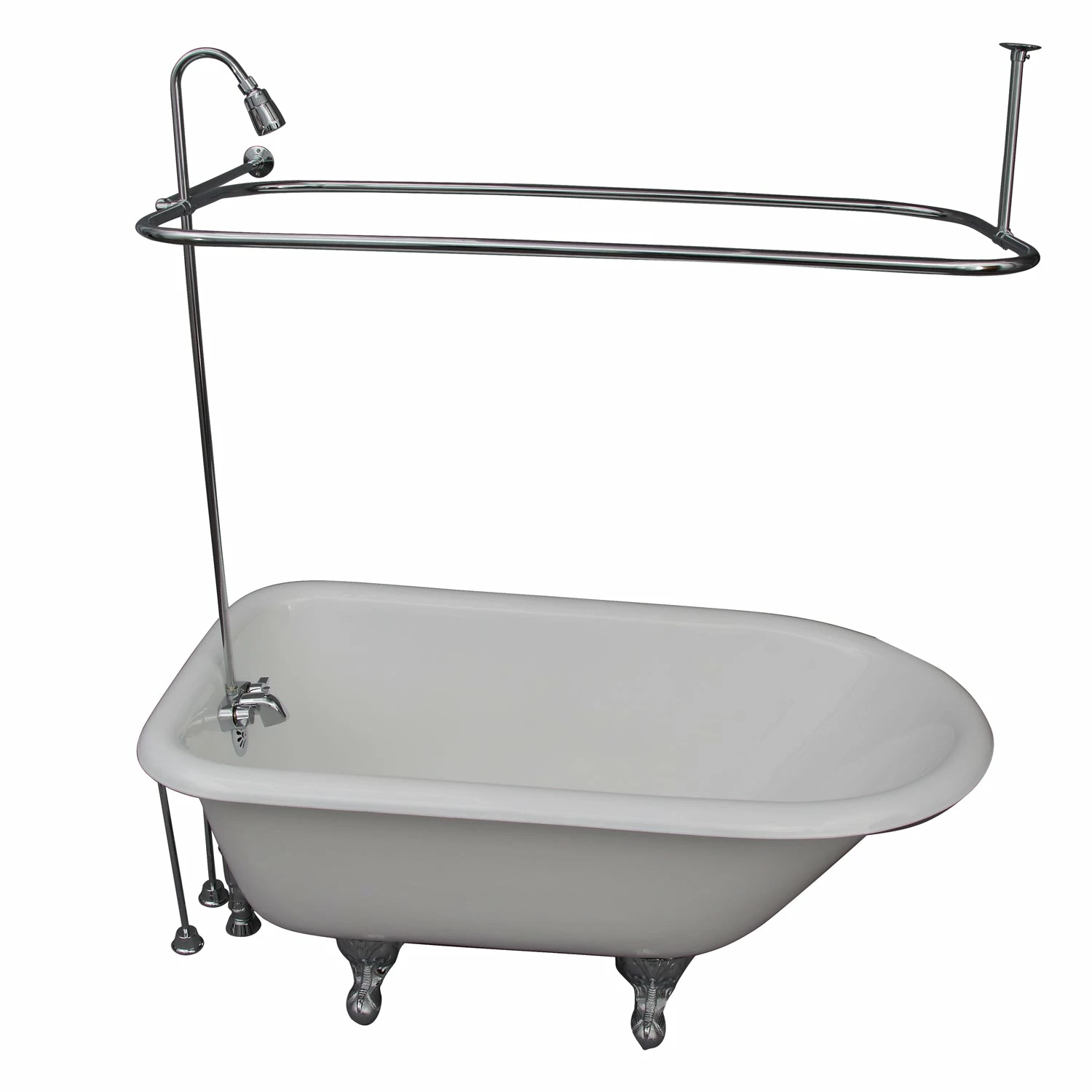 - Kit includes 55″ Cast Iron Tub, Tub Filler, 56″ Riser, “D” Shower Rod, Tub Supplies and Tub Drain