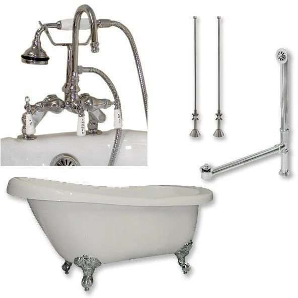 Cambridge Plumbing Acrylic Slipper Bathtub 61″ X 28″ with 7″ Deck Mount Faucet Drillings and Complete Plumbing Package
