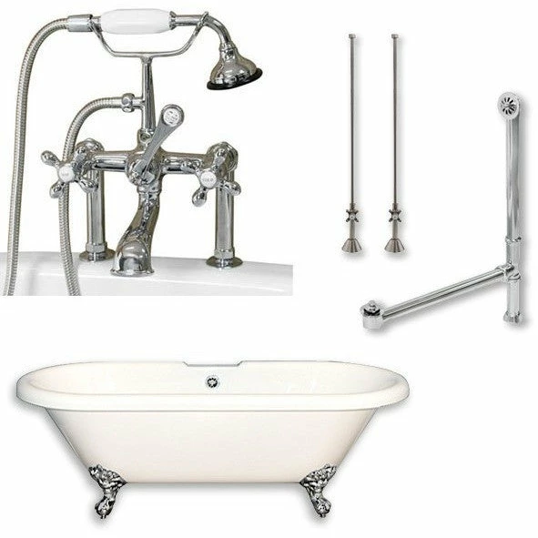 Cambridge Plumbing ADE-463D-6-PKG Acrylic Double Ended Clawfoot Bathtub 70″ X 30″ with 7″ Deck Mount Faucet Drillings and Complete Plumbing Package