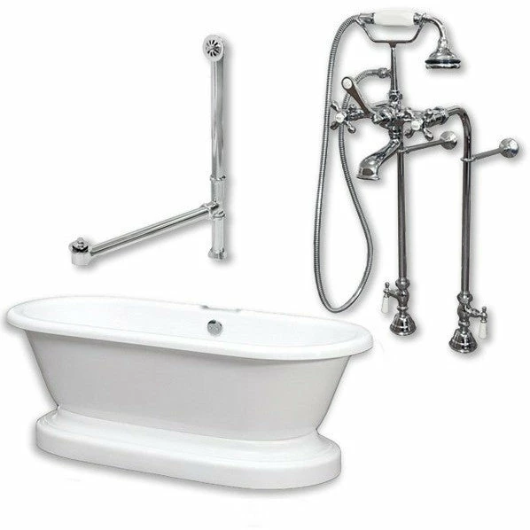 Cambridge Plumbing ADEP-398463-PKG-CP-NH Acrylic Double Ended Pedestal Bathtub 70″ X 30″ with no Faucet Drillings and Complete Polished Chrome Plumbing Package