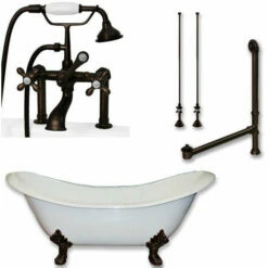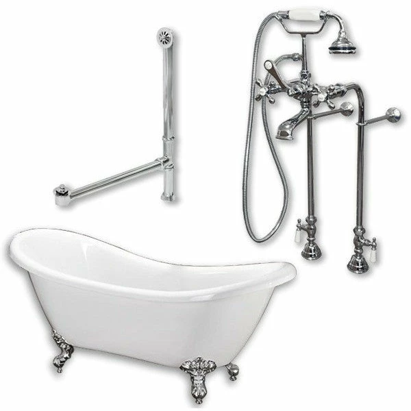 Cambridge Plumbing ADES-398463-PKG-CP-NH Acrylic Double Ended Slipper Bathtub 68″ X 28″ with no Faucet Drillings and Complete Polished Chrome Plumbing Package