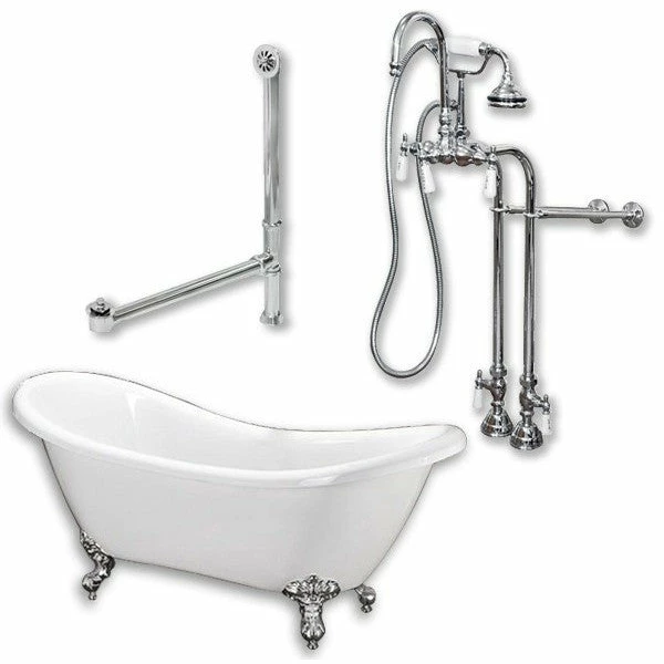 Cambridge Plumbing ADES-398684-PKG-CP-NH Acrylic Double Ended Slipper Bathtub 68″ X 28″ with no Faucet Drillings and Complete Polished Chrome Plumbing Package