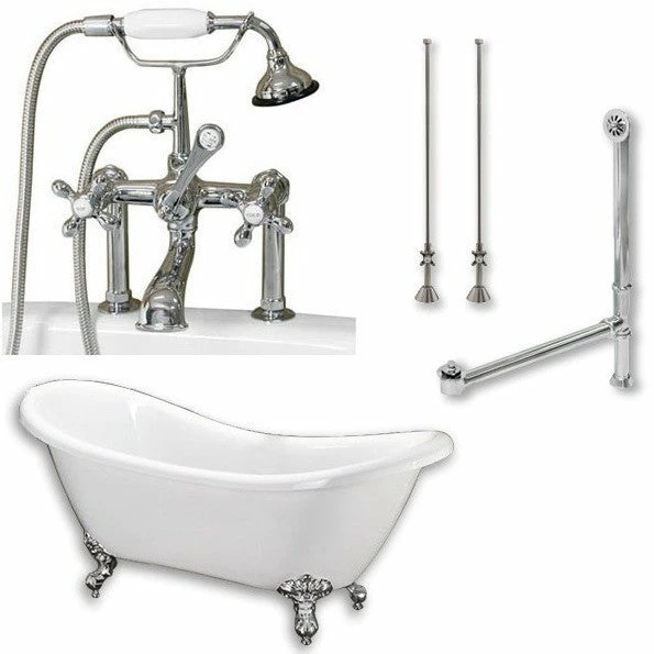 Cambridge Plumbing ADES-463D-6-PKG-CP-7DH Acrylic Double Ended Clawfoot Bathtub 68″ X 28″ with no Faucet Drillings and Complete Brushed Nickel Plumbing Package