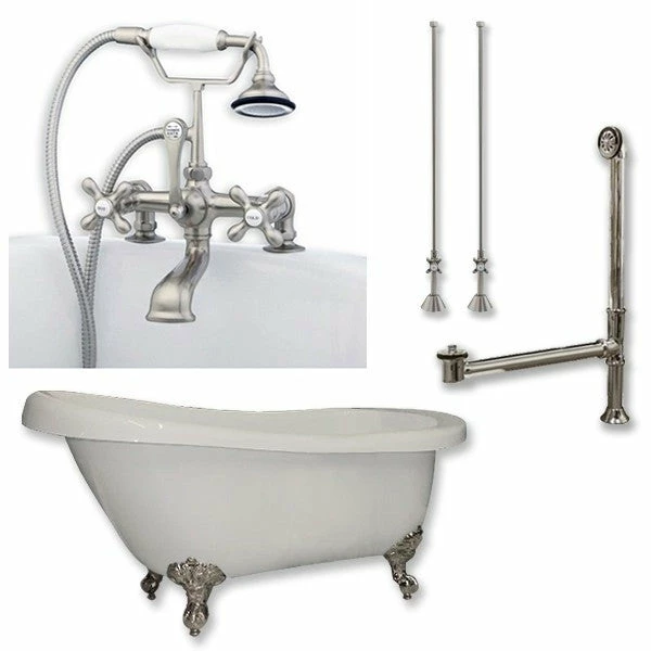 Cambridge Plumbing AST61-463D-2-PKG Acrylic Slipper Bathtub 61″ X 28″ with 7″ Deck Mount Faucet Drillings and Complete Plumbing Package