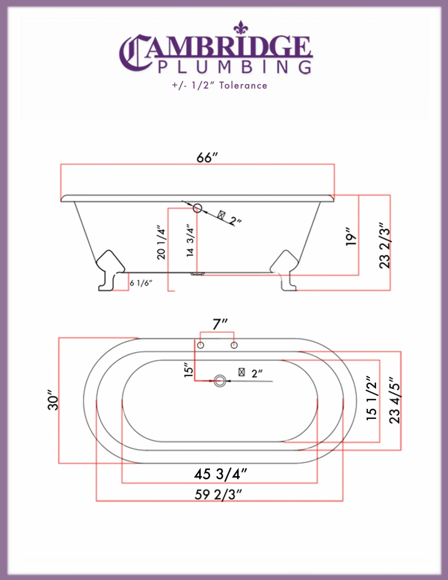 Cambridge Plumbing Cast Iron Double Ended Clawfoot Tub 67″ X 30″