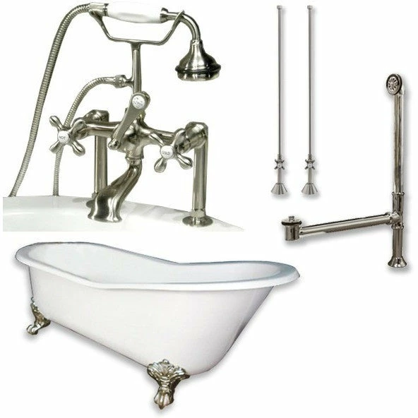 Cambridge Plumbing Cast Iron Slipper Clawfoot Tub 67″ X 30″ with 7″ Deck Mount Faucet Drillings and British Telephone Style Faucet Complete Plumbing Package And Six Inch Deck Mount Risers