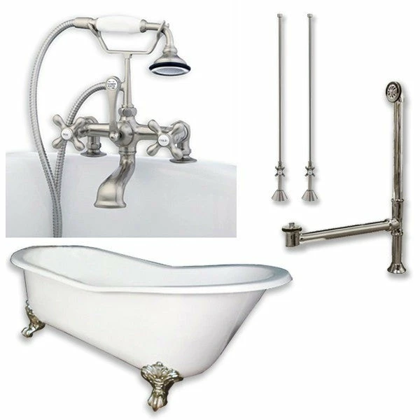 Cambridge Plumbing Cast Iron Slipper Clawfoot Tub 67″ X 30″ with 7″ Deck Mount Faucet Drillings and Complete Plumbing Package