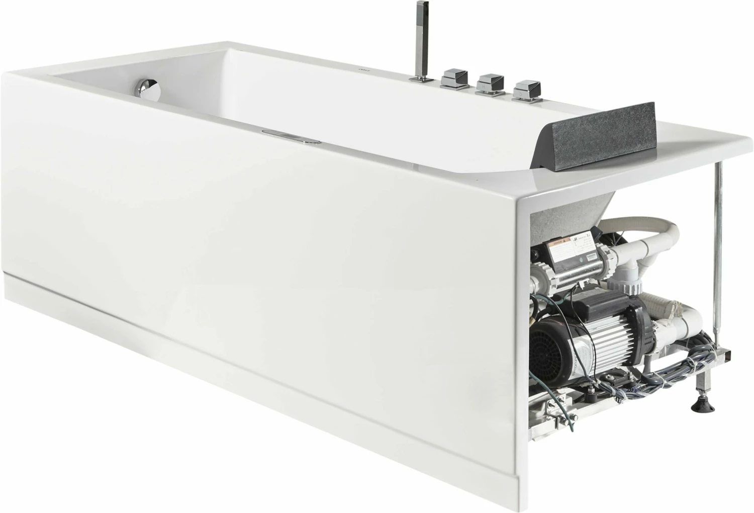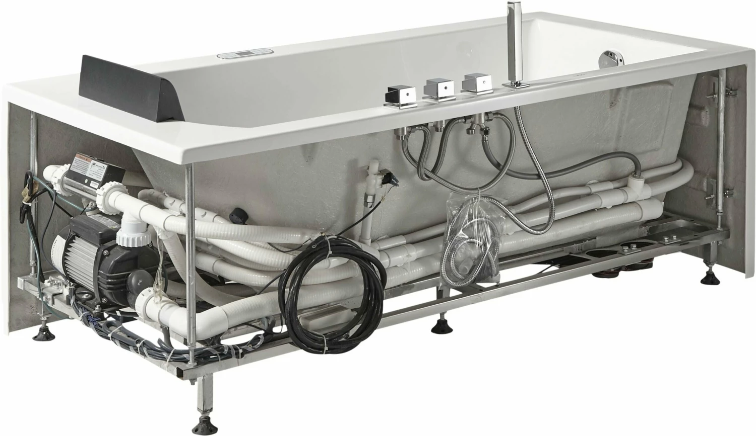 - Keypad Control Panel: Stylish control panel easily operates the bathtubs whirlpool jets, inline heater, digital sound system, and chromatherapy lighting.