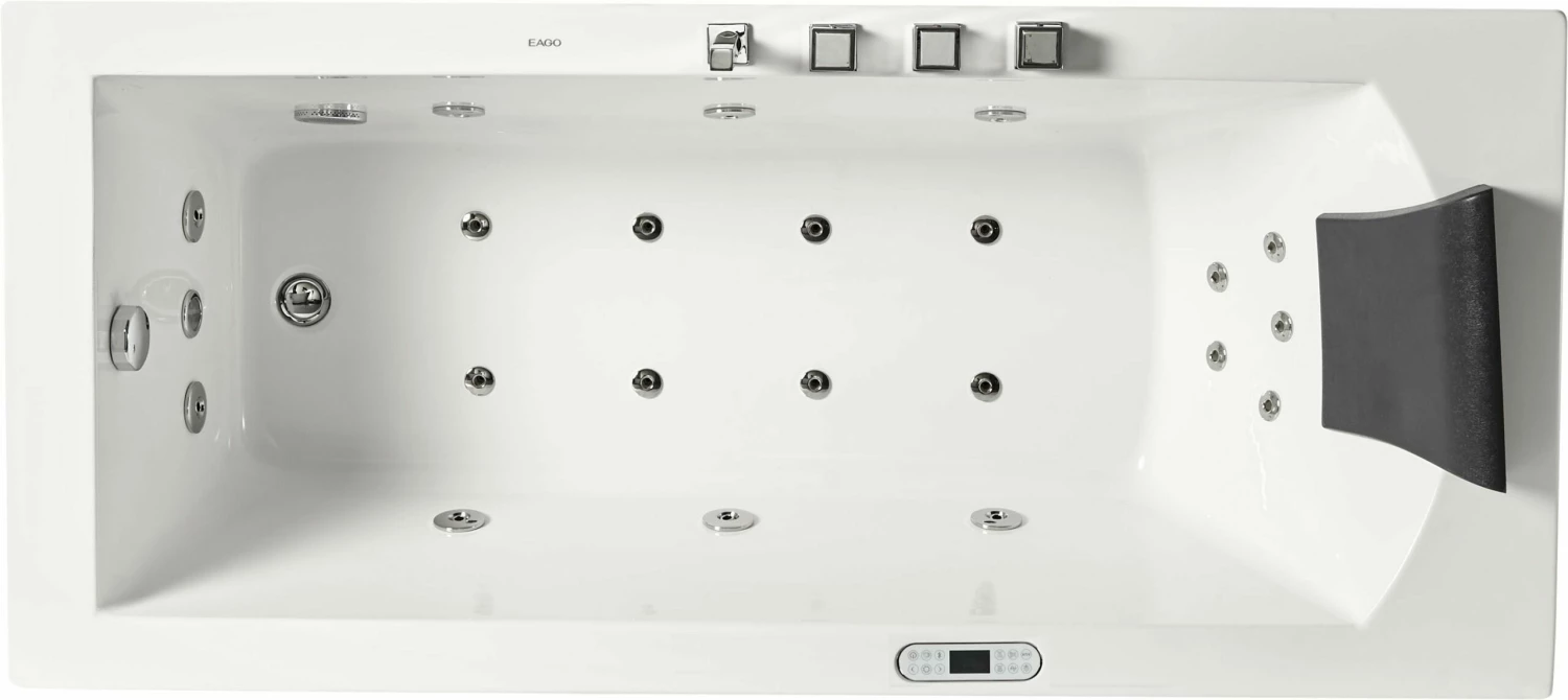 Transform your bathroom into a spa-like sanctuary with this gorgeous EAGO AM154ETL-L6 Acrylic Whirlpool Tub. Relax and slowly slip into this beautiful jacuzzi bathtub at the end of a stressful day and take some time for yourself.Modern and elegant, this EAGO AM154ETL-L6 tub transforms your bathing experience and let’s you indulge in a deeper and more satisfying soak. This ETL Certified tub is filled with cool gadgets and effects like the built in stereo, lighting, and button jets. Enjoy a state of complete relaxation and tranquility and indulge in a full body spa-like experience in the comfort of your own home. Available in 5 or 6 ft lengths and Left or Right drain locations.