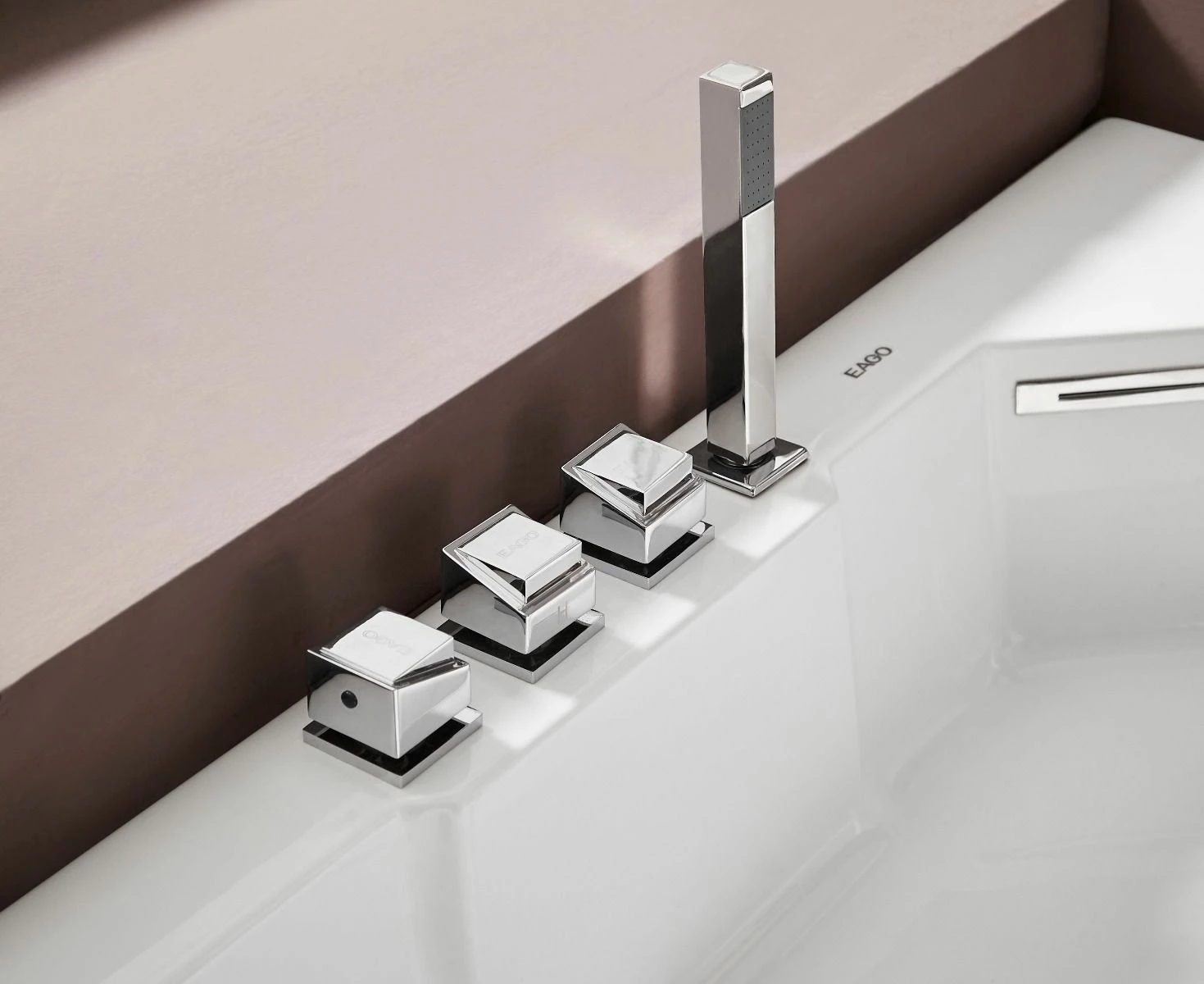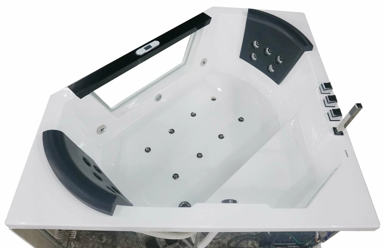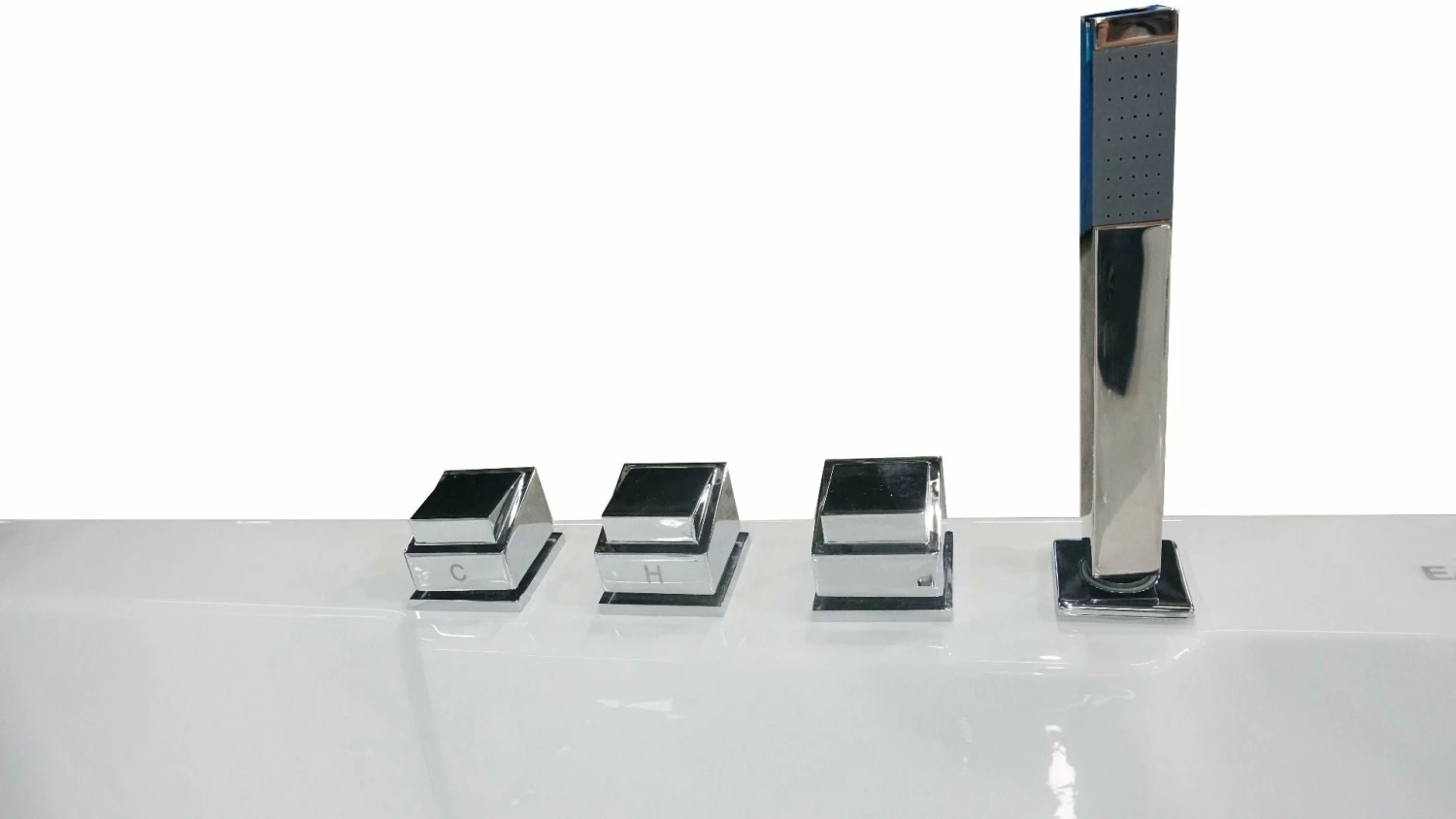 - Please note that this tub fills itself through the jets! Tub comes with chrome fixtures, but if you’d like you can replace them and use your own instead. Includes a square shaped hand held shower head.