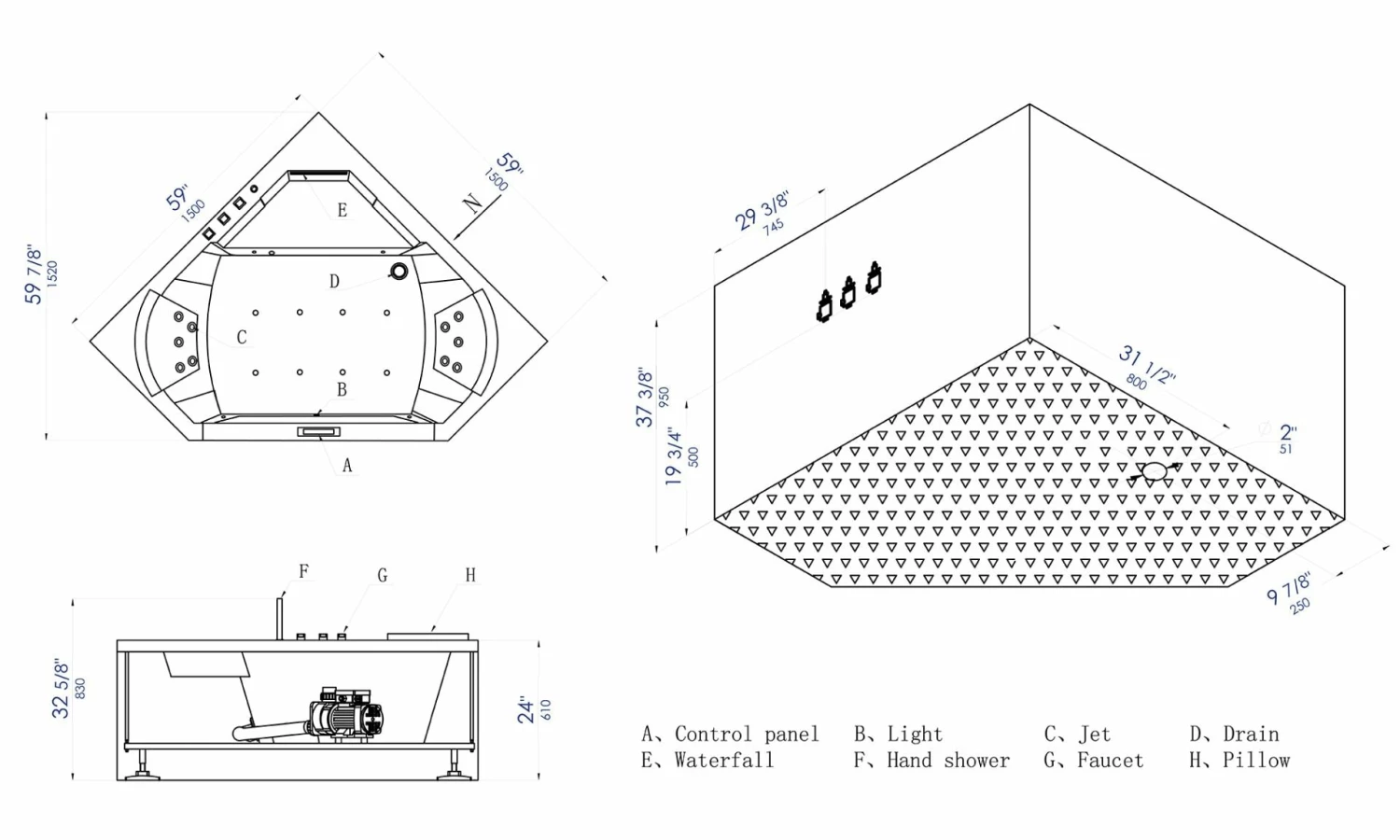 - Auto protection function for pump and 60 minutes auto shutdown function.
