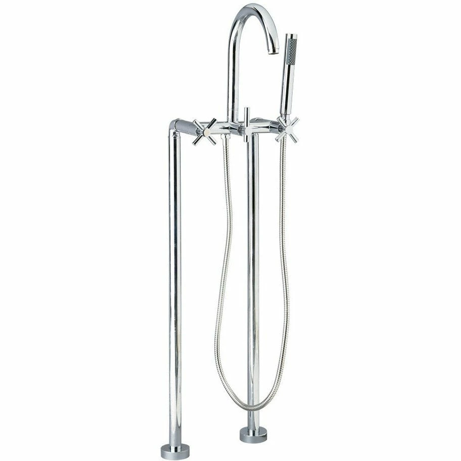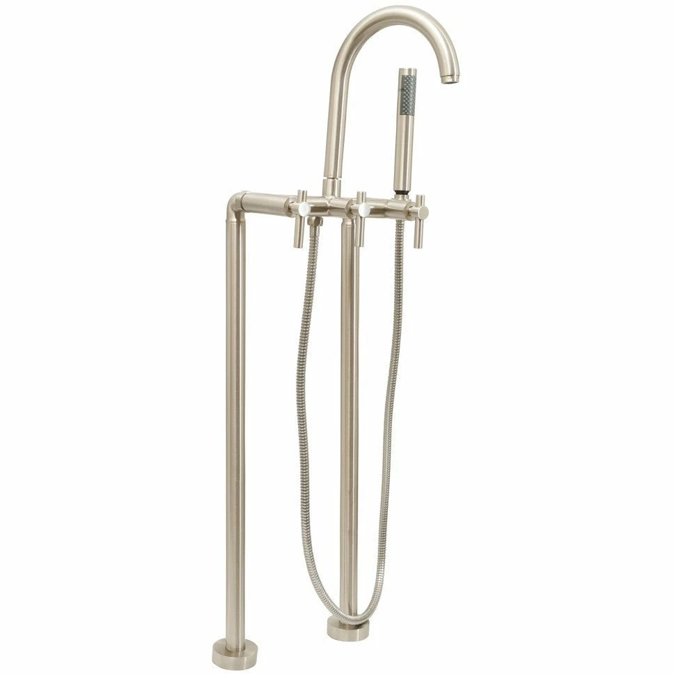 Giagni Faucets® Contemporary Floor Mount Tub Filler Faucets keep a designer look from floor to spout. When installed, these tub filler faucets create an exquisite look, complimenting any modern bath. All faucets include a faucet body, handles, hand-shower with hose and a complete mounting system.