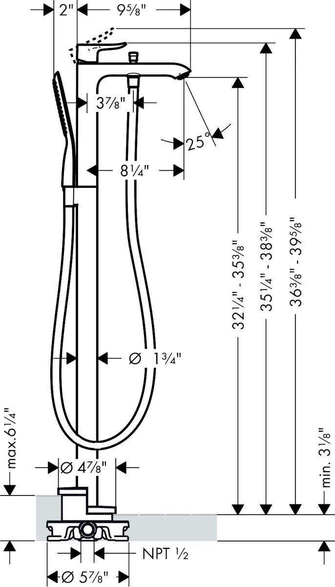 Talis S Freestanding Tub Filler Trim with Handshower and Diverter By Hansgrohe