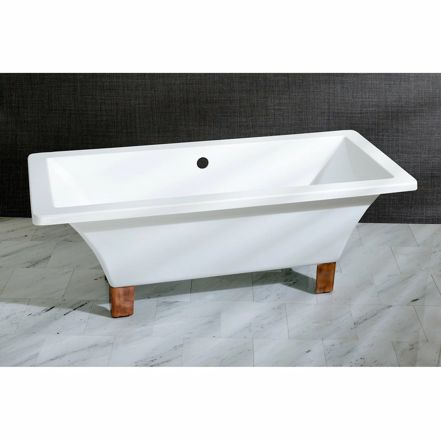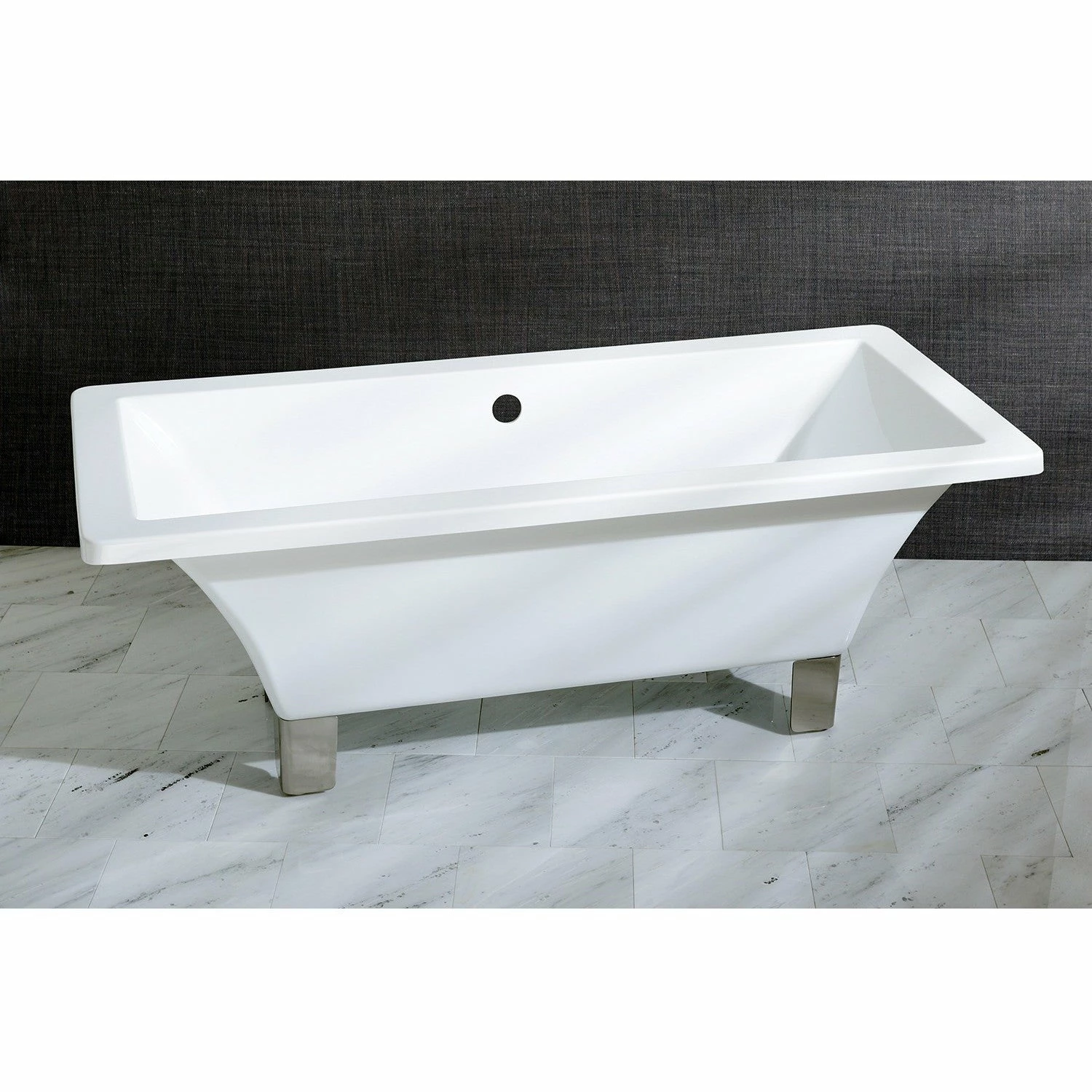 With sharp clean lines and an elegant design, this Aqua Eden bathtub features a rectangular design and a durable acrylic construction. The set of 4 tub feet are available in 5 different finishes. The strong acrylic material is reinforced with fiberglass and resin to ensure the bathtub can be enjoyed for years to come. Pair this stylish tub with any freestanding or wall-mounted bathtub faucet. Tub includes set of Eagle Claw and Ball feet with five different types of finishes to choose from; Polished Chrome, Polished Brass, Oil Rubbed Bronze, Naples Bronze or Satin Nickel finish.