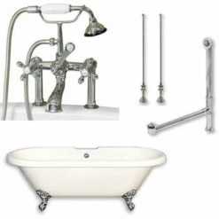 Cambridge Plumbing Cast Iron Double Ended Clawfoot Tub 60″ By 30″ With Tub Faucet – Package