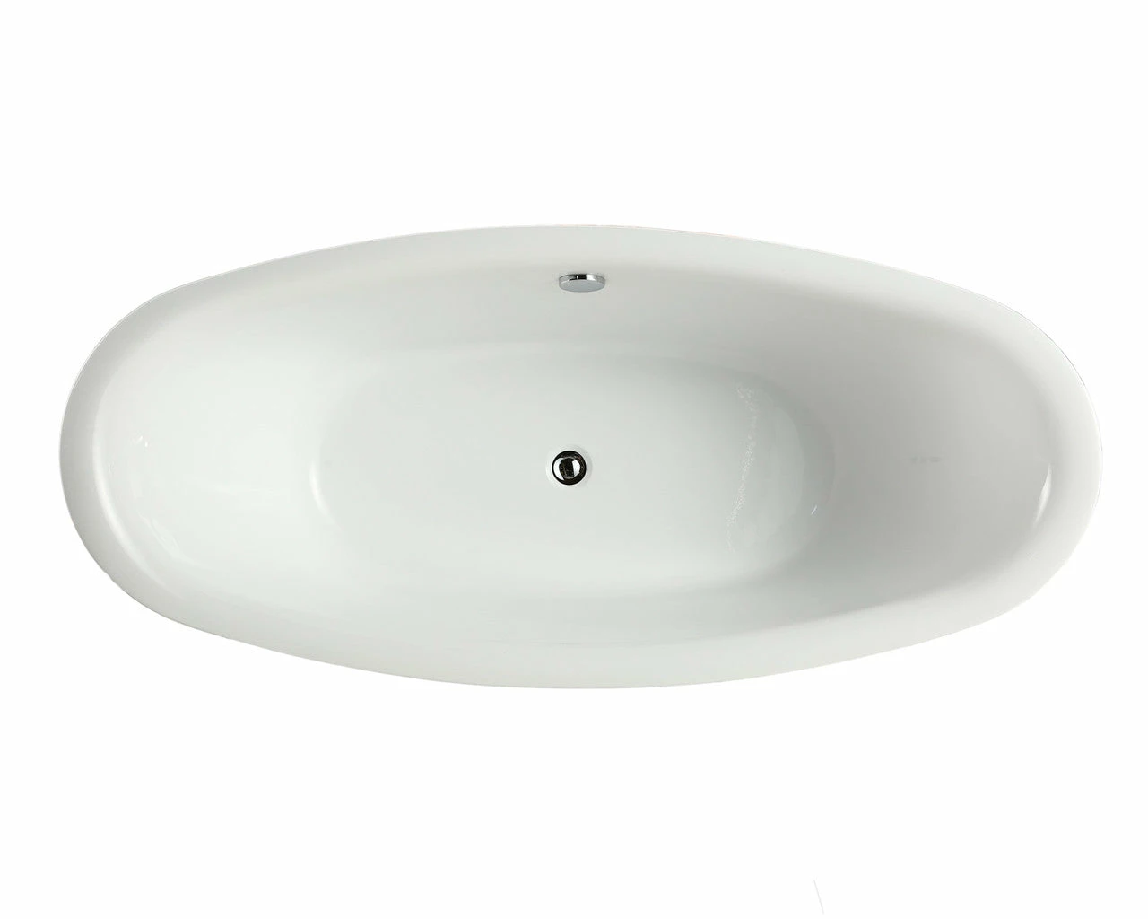 Soak and relax with MTD Vanities Newport Modern Freestanding Acrylic Bathtub. Designed and created for the bathing enthusiast in everyone wishing to enhance their experience in a tub boasting clean lines and curves specifically tailored for comfort. A fine example of modern contemporary style. Surround yourself in luxurious tranquility. Available in clean white or elegant black exterior finish. Complete with polished chrome hardware. Faucet not included.Features & Benefits of Newport 6807: