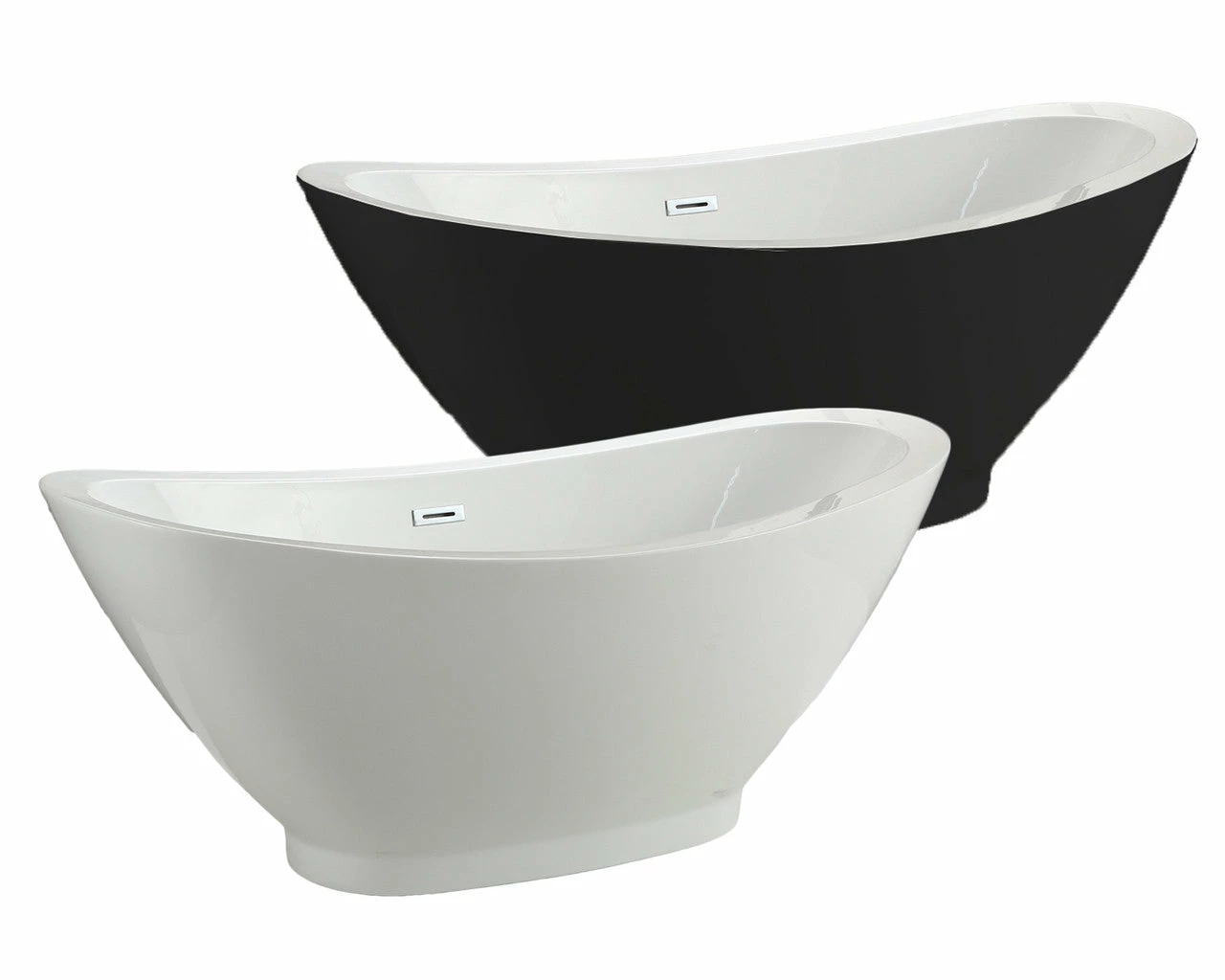 Soak and relax with MTD Vanities Seal Freestanding Acrylic Bathtub. Designed and created for the bathing enthusiast in everyone wishing to enhance their experience in a tub boasting clean lines and curves specifically tailored for comfort. A fine example of modern contemporary style. Surround yourself in luxurious tranquility. Available in clean white or luxurious black exterior finish. Complete with polished chrome hardware. Faucet not included.Features & Benefits of Seal 6516: