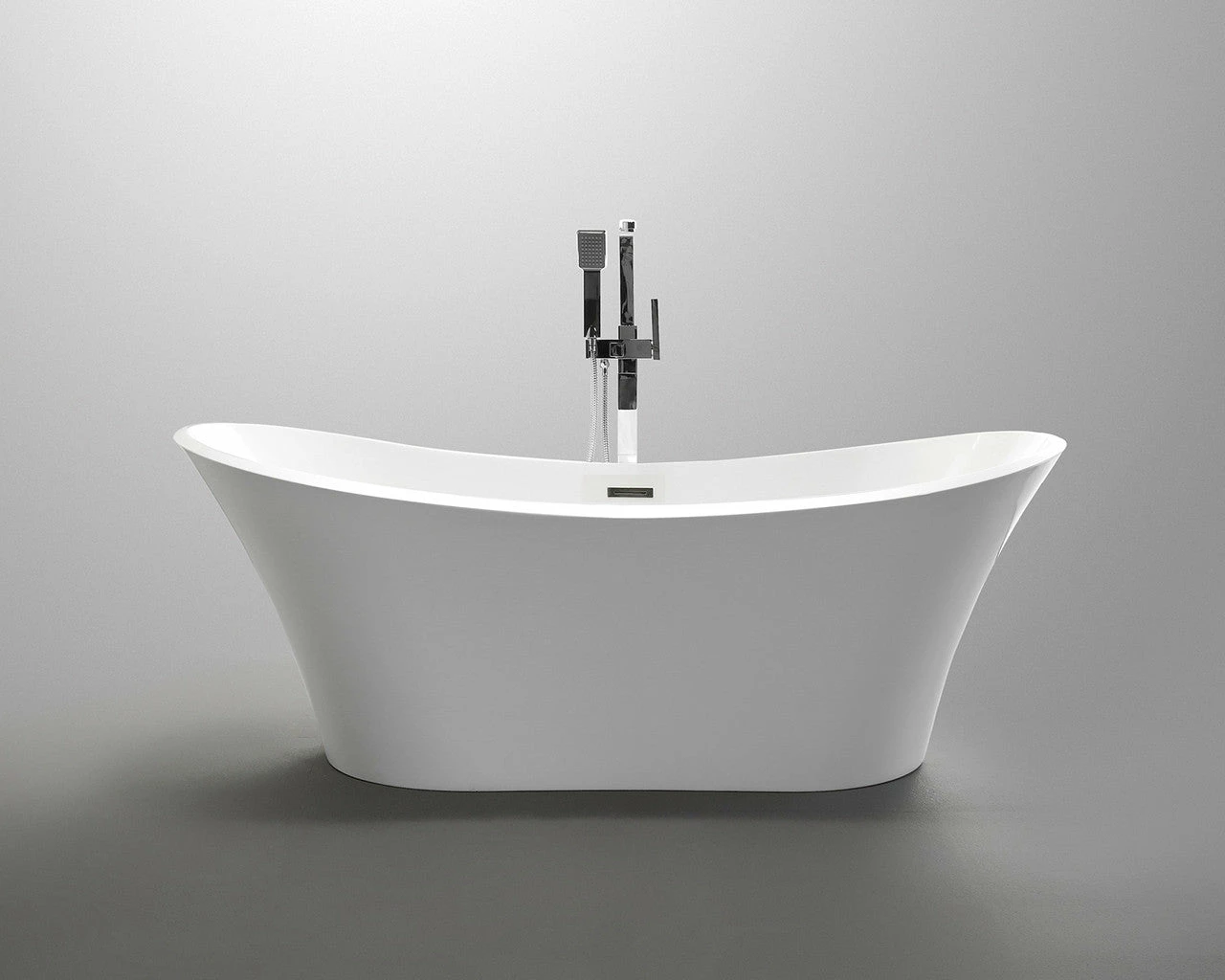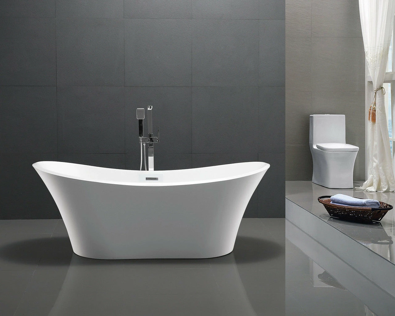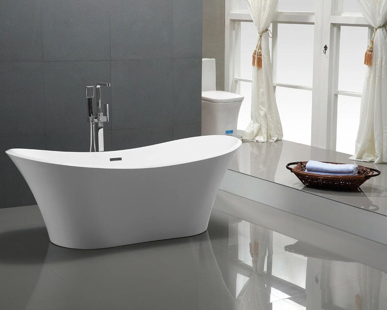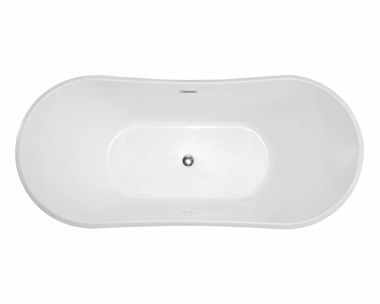 Soak and relax with the MTD Vanities Torrance Modern Freestanding Acrylic Bathtub. Designed and created for the bathing enthusiast in everyone wishing to enhance their experience in a tub boasting clean lines and curves specifically tailored for comfort. A fine example of modern contemporary style. Surround yourself in luxurious tranquility. Complete with polished chrome hardware. Faucet not included.Features & Benefits of Torrance 6518: