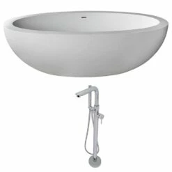 ALFI Brand AB9949 66″ White Solid Surface Smooth Resin Soaking Bathtub